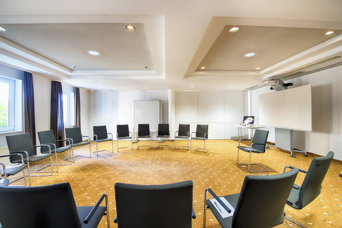50 m², Tageslicht, Verdunkelung möglich, Bodenbelag Teppich, Raumhöhe 2,5 m, klimatisiert, durch schalldichte Trennwände separier- und kombinierbar